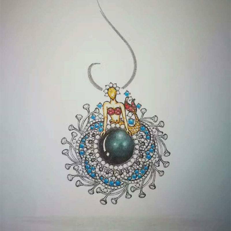 说明:主石为大溪地黑珍珠,副石为钻石、碧玺、托帕石以及石榴石。